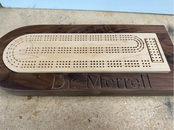 You have the ability to have a name of your choosing engraved into the bottom portion of the cribbage board.