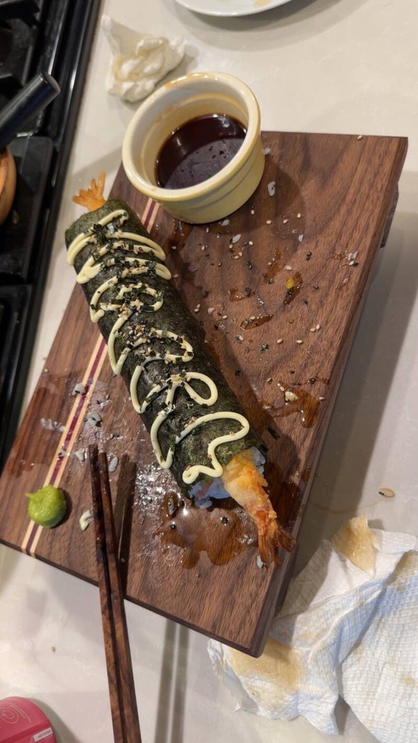 This product comes with a custom made sushi tray and a set of handmade chop stick.
